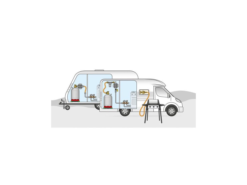 Držák je určen pro připevnění plynového filtru Caramatic ConnecClen na stěnu plynové skříňky obytného vozu nebo karavanu.