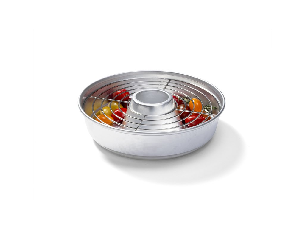 Díky roštu v troubě pro Omnia Classic můžete připravovat dva pokrmy současně. Zatímco se například dole vaří hlavní chod, můžete na roštu nad ním péct chléb nebo ohřívat přílohu. To šetří plyn a čas a také snižuje nutnost mytí nádobí. Navíc mnoho pokrmů prospívá vůni toho druhého. Ať už kempujete nebo cestujete – toto praktické příslušenství dělá vaření s Omnií ještě všestrannější a pohodlnější.