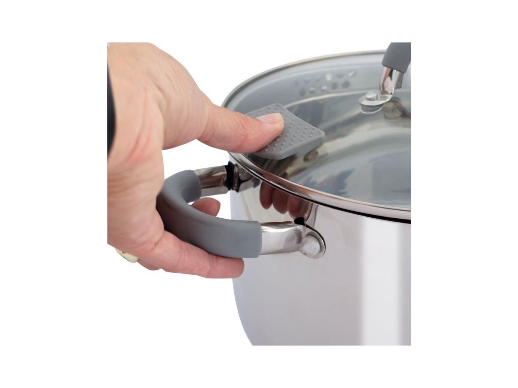 - Rukojeti jsou pokryty tepelně odolným ochranným silikonem