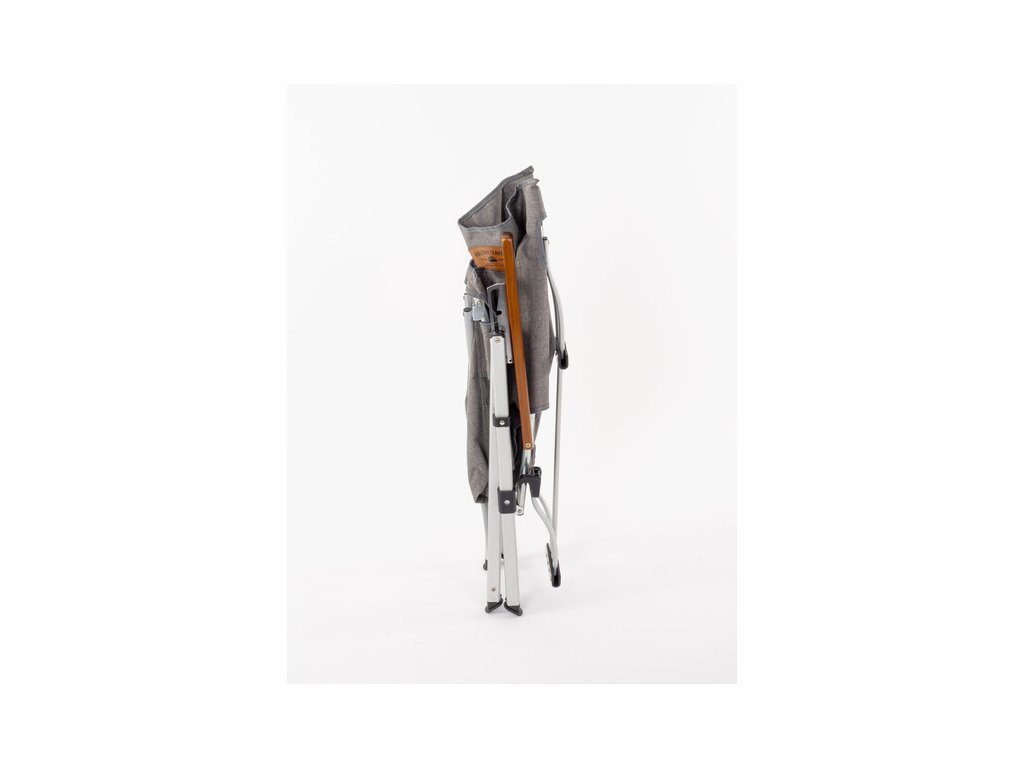 Základ tohoto skládacího křesla tvoří odolný hliníkový rám se stříbrným povrchem, který vyniká vynikající pevností při zachování nízké hmotnosti. Díky kvalitním materiálům zvládne křeslo bez problémů zatížení až 100 kg. Sedák je vyroben z šedé melírované syntetické látky s koženým štítkem, která poskytuje dostatečnou oporu a zároveň dobře odolává povětrnostním vlivům při kempování.