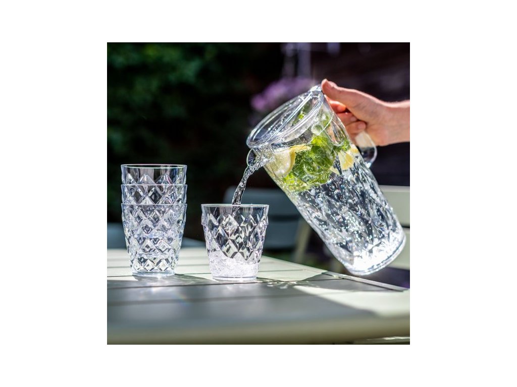 - Karafa a sklenice Crystal svým elegantním fasetovým designem izolují teplé i studené nápoje.