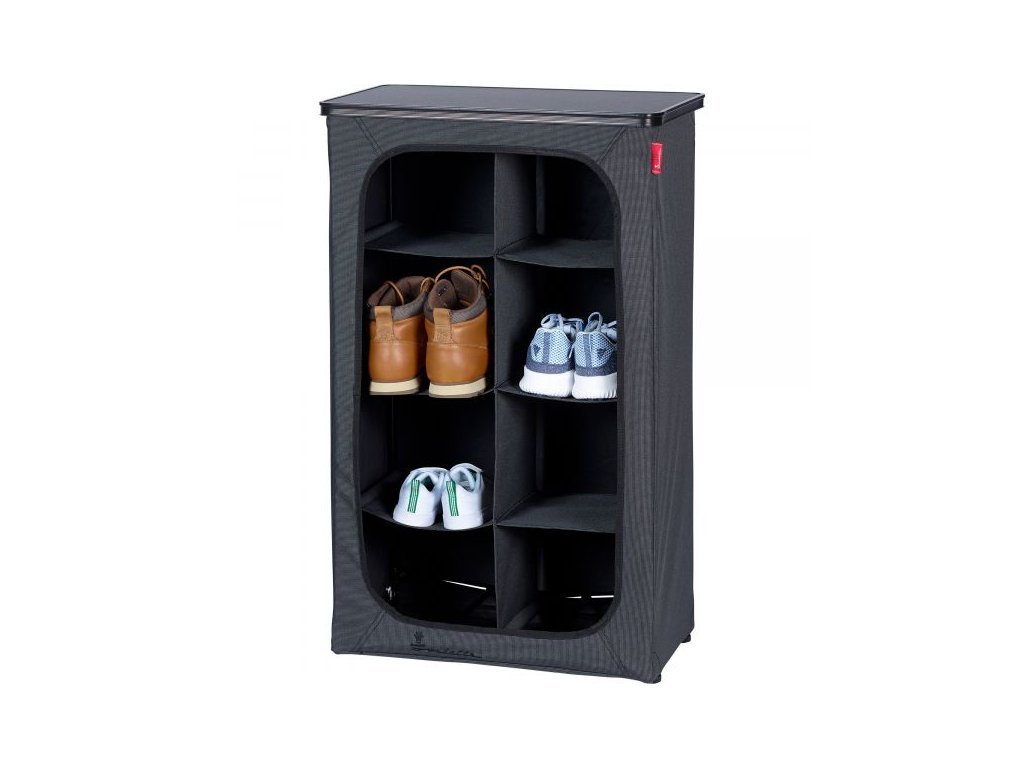 - V rozloženém stavu měří 50 × 30 × 85 cm a nabízí 8 praktických přihrádek pro boty