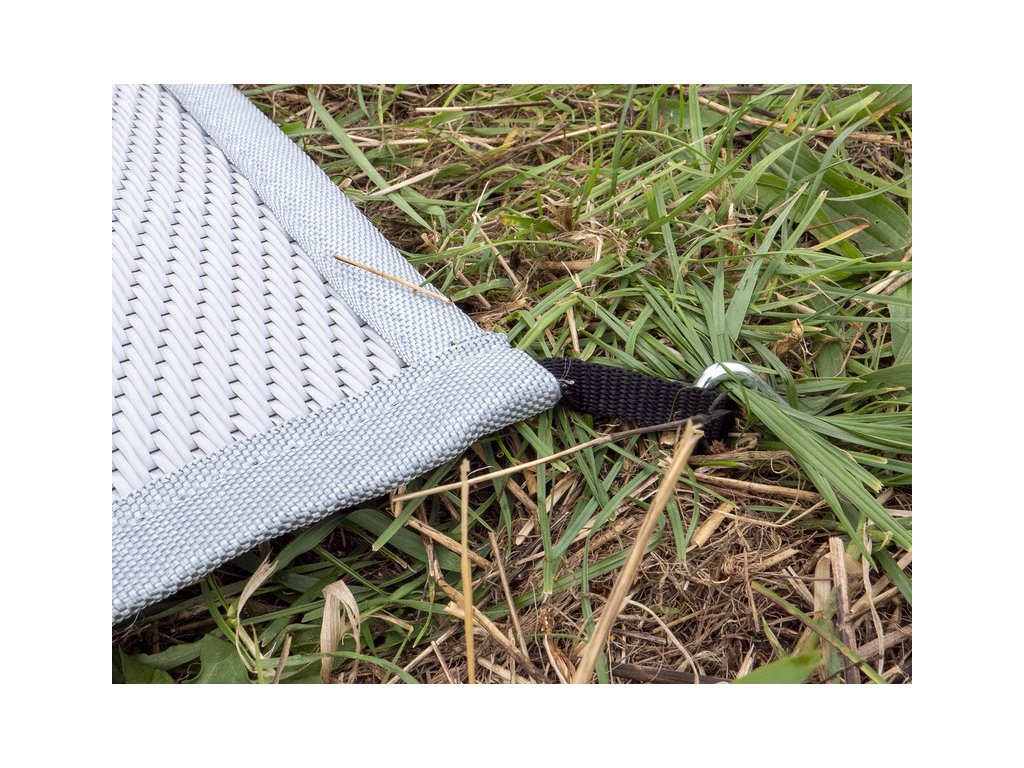 - Koberec je opatřen oky na každém rohu pro snadné připevnění kolíky
