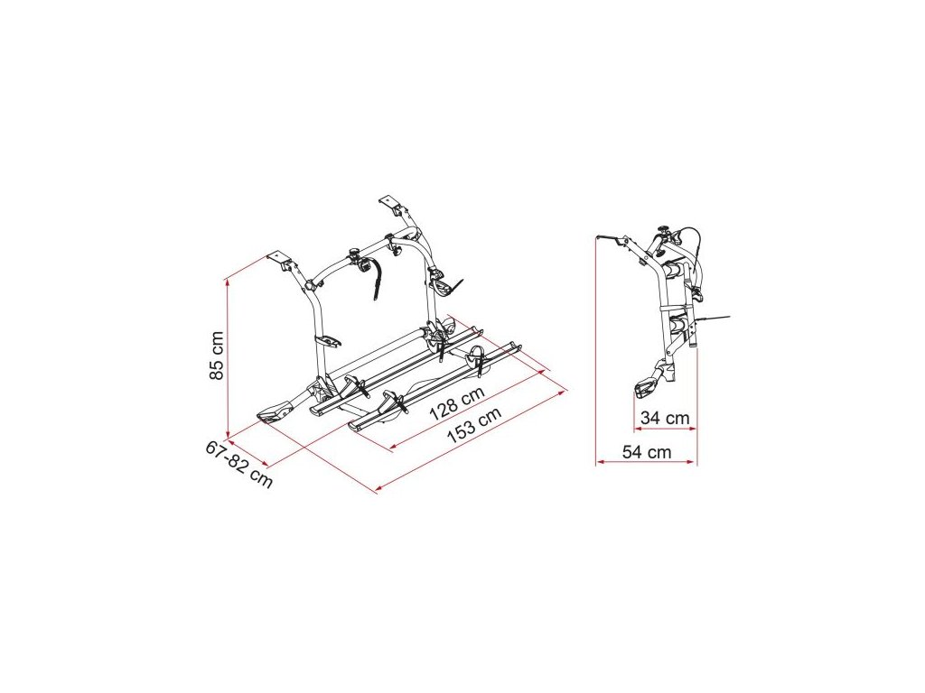 - 1 Bike-Block Pro S 1, 1 Bike-Block Pro S 3, 1 bezpečnostní páska, 2 držáky na nosič, 2 prémiové lišty Rail Premium, montážní držák