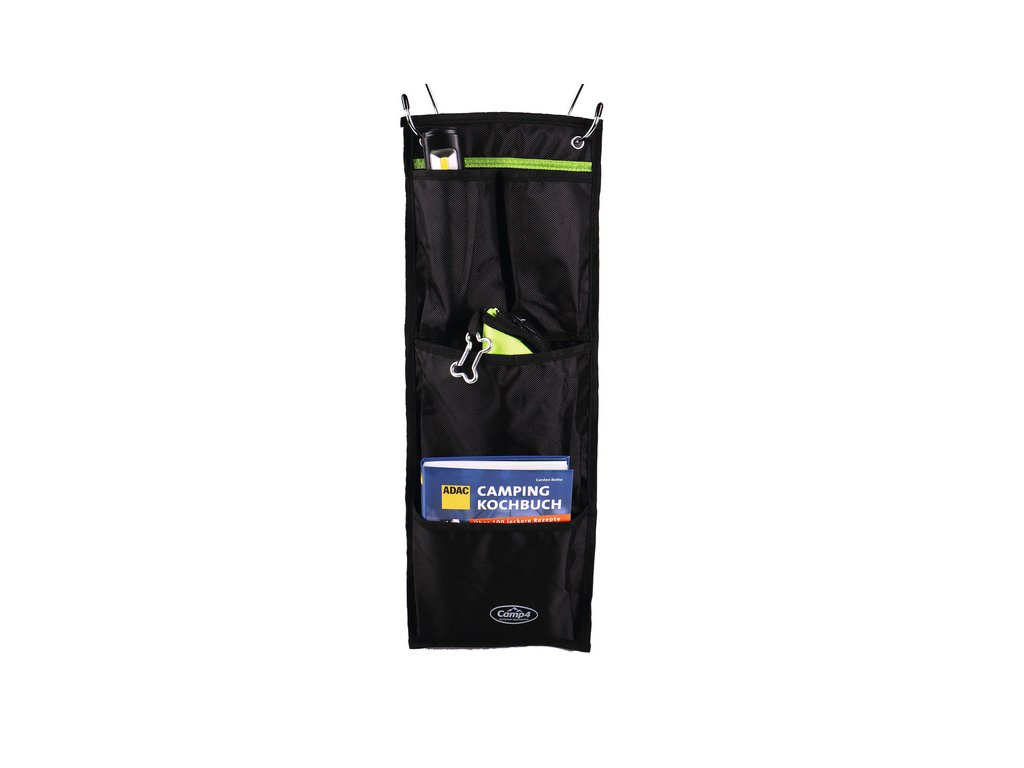 Mini organizér se čtyřmi kapsami a 2 očky. Nová kombinace látek: černá/limetková