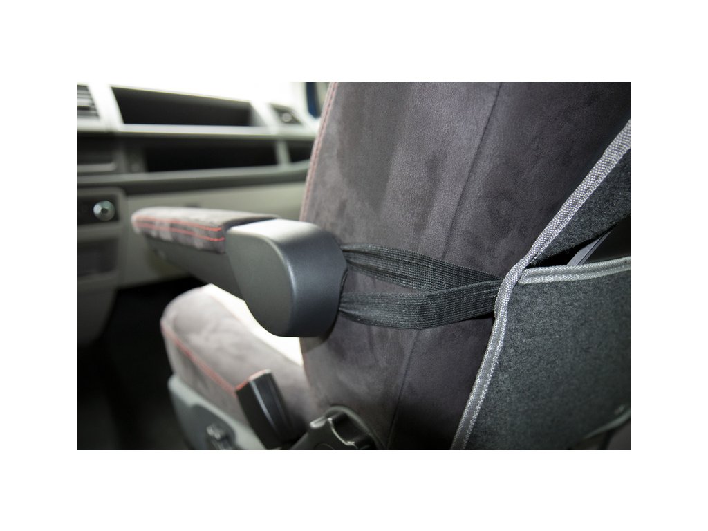 Lehké upevnění okolo opěrek pomocí elastických popruhů. Spodní část se připevňuje pomocí háků pod sedadlo. K opěrce hlavy se připevňuje pomocí suchého zipu. Organizátor je dobře fixován i během cesty.
