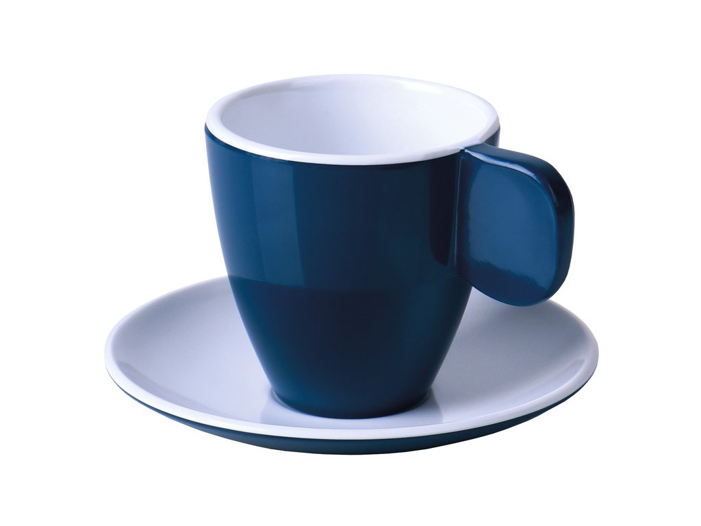 Sada 2 melaminových hrnků na espresso v krásné modré barvě.