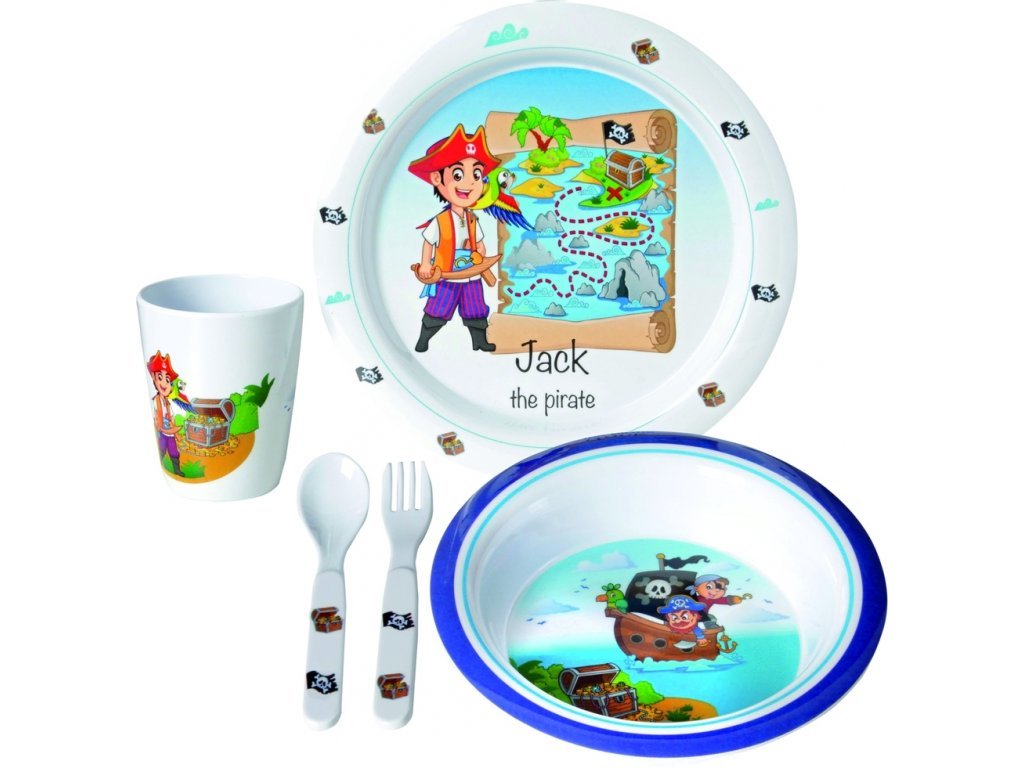 Krásná sada melaminového nádobí pro kluky.
