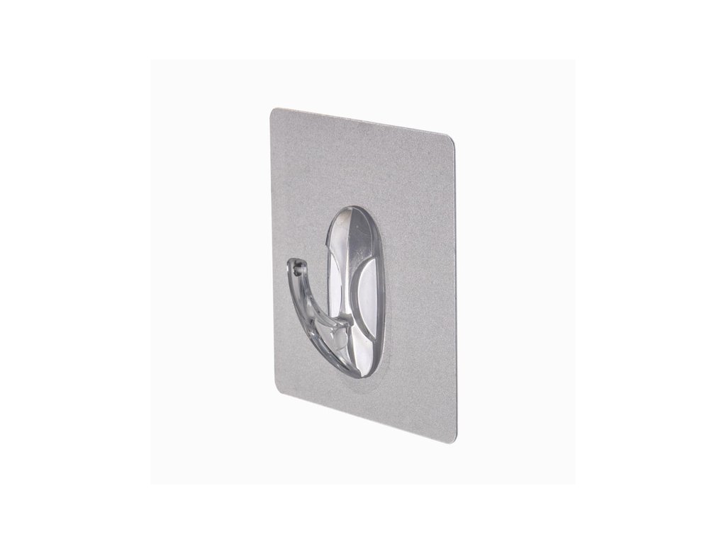Háček s průhledným lepicím povrchem pro pevné uchycení.