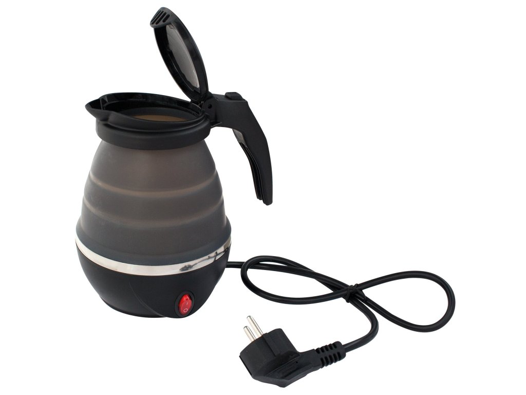 Skládací rychlovarná konvice ze silikonového materiálu je praktická a zároveň prostorově úsporná pro Váš karavan, obytný vůz nebo vestavbu.