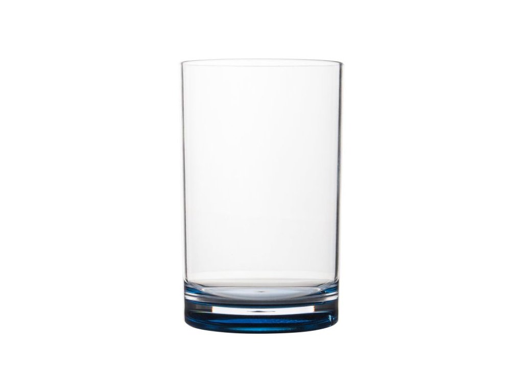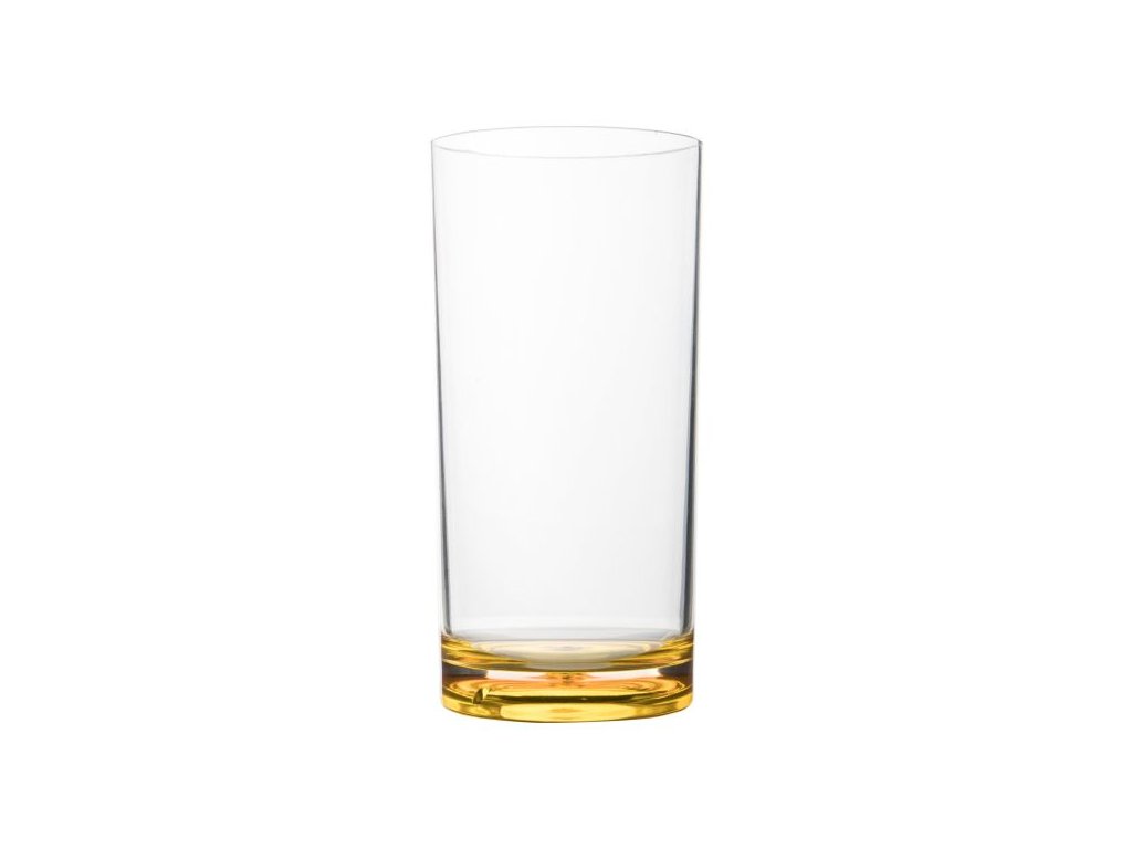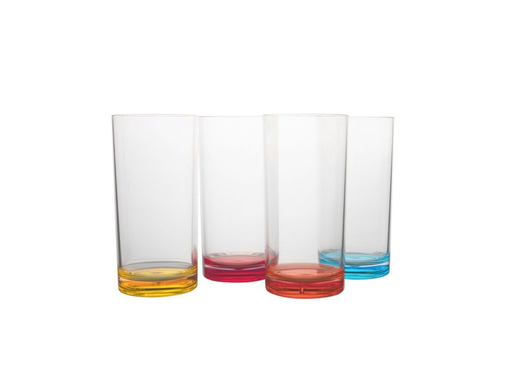 Stylová plastová sklenice od Gimexu s barevným dnem.