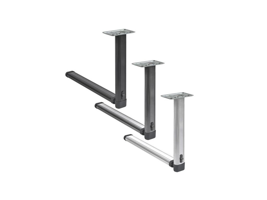 Jednoduché upevnění pomocí standardních šroubů a univerzální rozměry zajišťují kompatibilitu s většinou karavanů na trhu. Díky této sklopné noze snadno vytvoříte praktický a stabilní stůl ve vašem obytném voze nebo motorhomu.