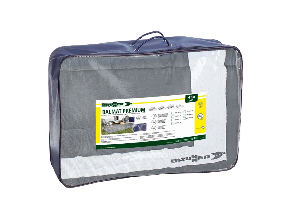 Velmi lehký (gramáž 350 g/m²) koberec pod stan a markýzu vyrobený ze 100% vysoce kvalitního polypropylenu, vhodný zejména pro menší obytné vozy a karavany. Snadno se přepravuje a rychle a snadno se čistí. Speciálně prodyšná struktura umožňuje vegetaci pod ním dýchat. Balmat lze použít z obou stran a je vybaven očky ve 4 rozích pro upevnění k zemi pomocí kolíků. Součástí dodávky je praktická přepravní taška.