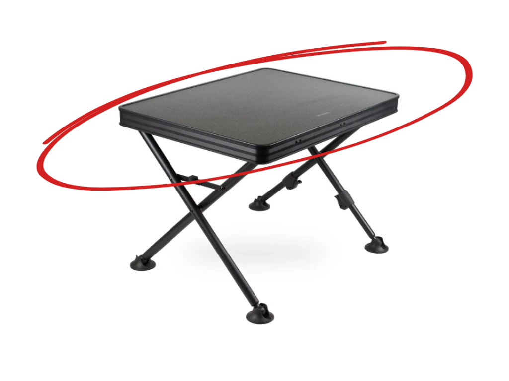 Hlavní předností tohoto produktu je schopnost proměnit odpočívadlo Performance Focus na plnohodnotný boční stolek bez nářadí. Jednoduchý systém přímého připojení umožňuje bleskovou instalaci i demontáž. Desku lze využít také jako samostatný servírovací tác, což rozšiřuje její praktičnost v kempu i mimo něj. Ploché složení zajišťuje minimální prostorové nároky při převozu.