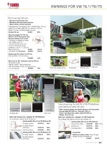 -Incl. packing bag 443600 746,-- Room Van awning awning Dimensions Housing color