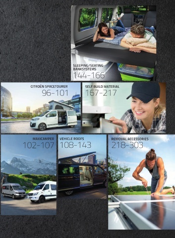 SLEEPING/SEATING BANKSYSTEMS 144-166 CITROËN SPACETOURER SELF BUILD MATERIAL 96-101 167-217 RENAULT / OPEL / FIAT / NISSAN MAXICAMPER VEHICLE ROOFS REMOVAL ACCESSORIES CAMPER VAN 102-107 108-143 218-303
