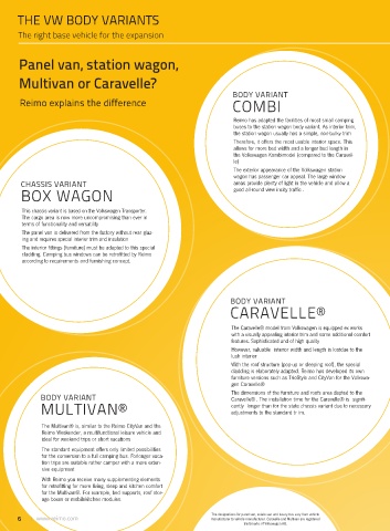 6 www.reimo.com manufacturer to vehicle manufacturer. Caravelle and Multivan are registered
