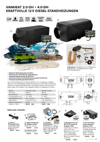 Lieferumfang: Dieselstandheizung, LCD-Bedienpanel,