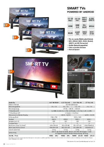 LED-TV, Standfuß/Standfüße, Netzteil 100-240V, KFZ-Adapter 12-30V