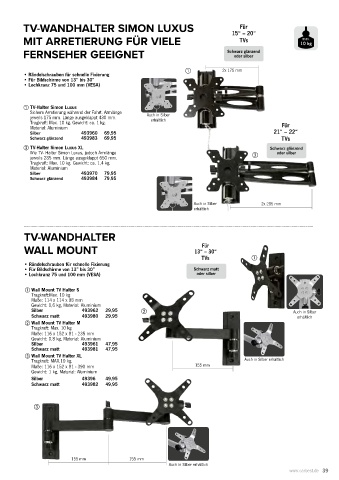 Wie TV- Halter Simon Luxus, jedoch Armlänge b oder silber