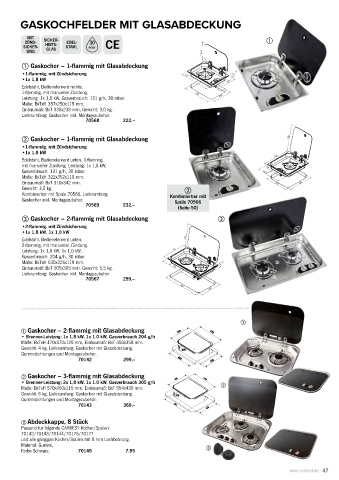Leistung: 1x 1,8 kW, Gasverbrauch: 131 g/h, 30 mbar.