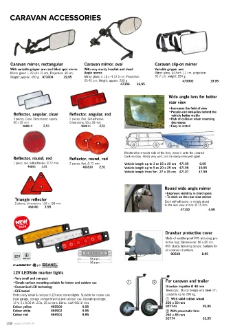 Caravan mirror, rectangular Caravan mirror, oval Caravan clip-on mirror