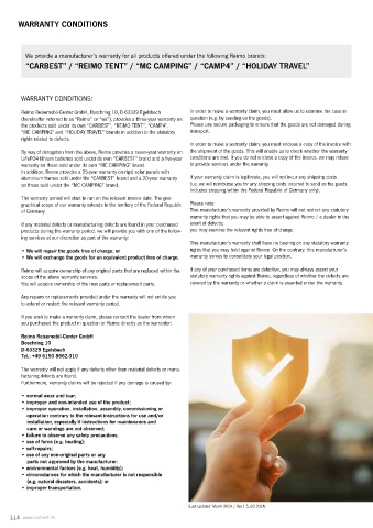 Reimo Reisemobil-Center GmbH, Boschring 10, D-63329 Egelsbach In order to make a warranty claim, you must allow us to examine the case in