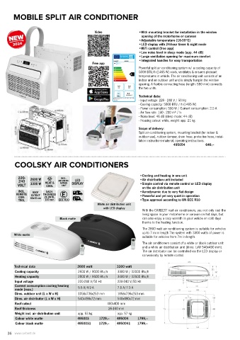 5000 BTU/h (1465 W) cools, ventilates & ensures pleasant