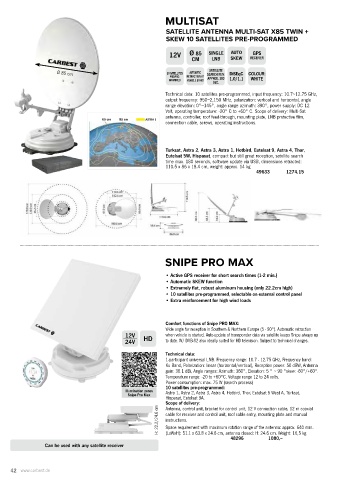 12V HD when vehicle is started. Auto-update of transponder data via satellite keeps Snipe always up