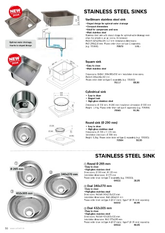 Optimal water drainage, WxD 298x218 mm. Please order drain set type E separately