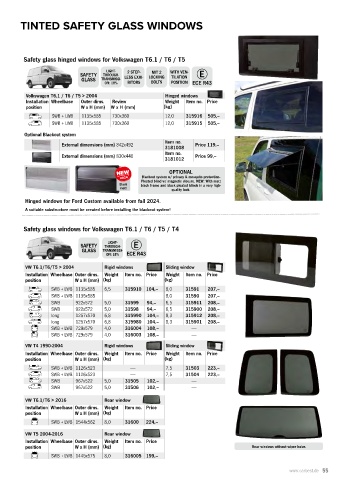 Safety glass windows for Volkswagen T6.1 / T6 / T5 / T4