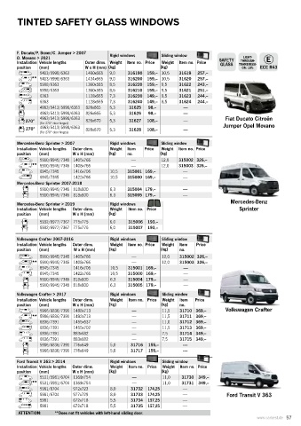 Installation Vehicle lengths Outer dims. Weight Item no. Price Weight Item no. Price GLASS TRANSMISSI-