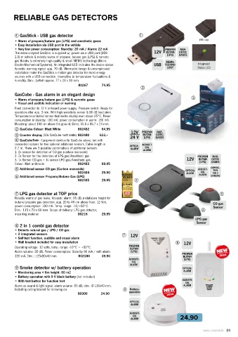 butane/propane gas detection: app. 20 to 40 cm above floor. 12 Volt, CO gas