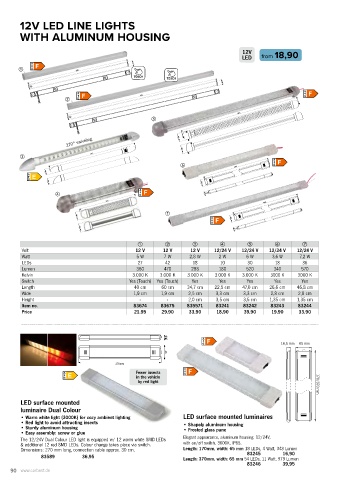 The 12/24V Dual Colour LED light is equipped w/ 12 warm white SMD LEDs Elegant appearance, aluminum housing. 12/24V,