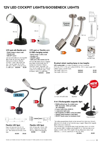 6 x SMD LEDs. 830346 26,90 mm / flex arm length: 90 mm, USB port Ø 35 mm, 12 V, 1.2 W, warm white (3,000 K), 100 lm, beam angle 120°.