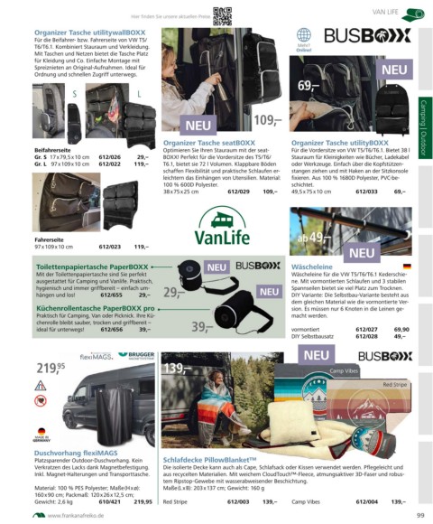 ausgestattet für Camping und Vanlife. Praktisch, ne. Mit vormontierten Schlaufen und 3 stabilen