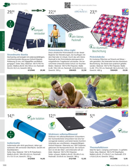 rutschhemmendem Bezug aus Oxford-Polyester. Packmaß ist die Picknickdecke platzsparend im Ein trockenes Plätzchen auf Strand und Wiese –