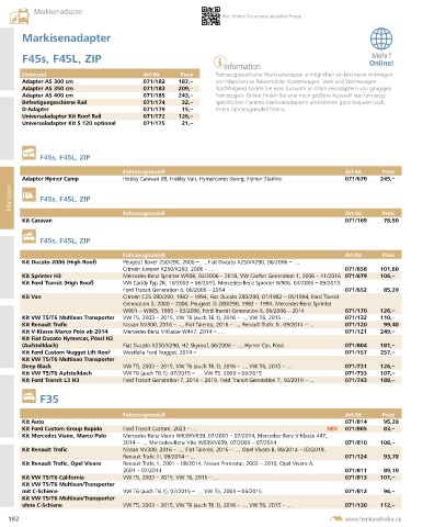 Universal Art-Nr. Preis Fahrzeugspezifische Markisenadapter ermöglichen ein leichteres Anbringen
