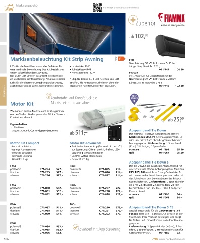 • kompakter Motor • Praktische Fiamma App (für Android und iOS) (11 m), 2 Erdnägel, 1 Spannfeder.