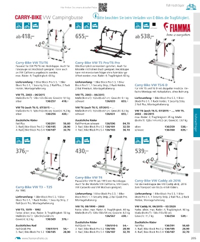 VW Campingbusse Bitte beachten Sie beim Verladen von E-Bikes die Tragfähigkeit.