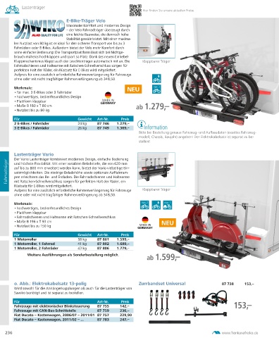 pen erleichtern das Be- und Entladen. Die Fahrradschienen und Haltearme