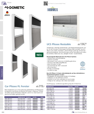 Car Plissee FL Fenster ab 219,– Maße (B x H) Gewicht Art-Nr. Preis