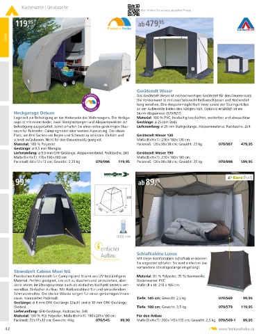 Packmaß: 72 x 17 x 12 cm; Gewicht: 4 kg 070/545 99,90 Maße (B x H x T): 200 x 145 x 135 cm; Gewicht: 2,5 kg 070/569-1 89,95