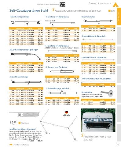 22 mm 110 – 160 cm 610/007 20,95 6 | Spann- und Firststab 22 mm 165 – 260 cm 610/118 27,50