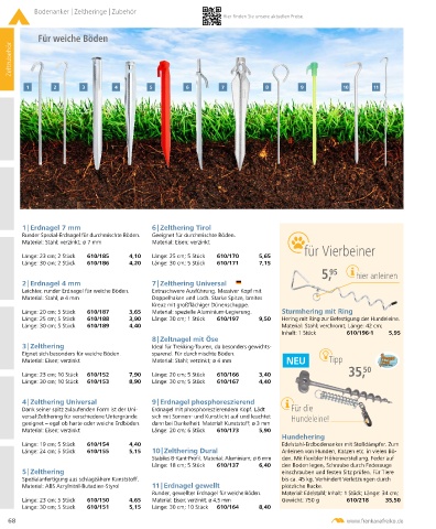 Länge: 25 cm; 5 Stück 610/188 3,90 Länge: 30 cm; 1 Stück 610/197 9,50 Hering mit Ring zur Befestigung der Hundeleine.
