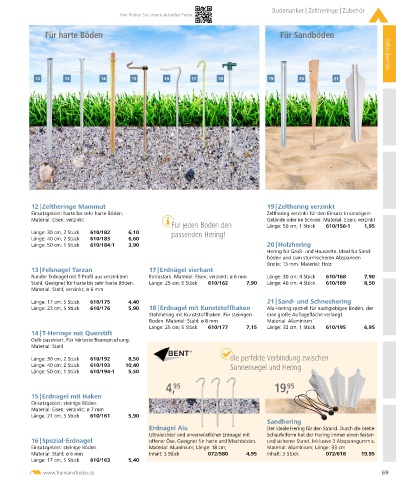 Stahl. Geeignet für harte bis sehr harte Böden. Länge: 25 cm; 5 Stück 610/162 7,90 Länge: 40 cm; 4 Stück 610/169 8,50