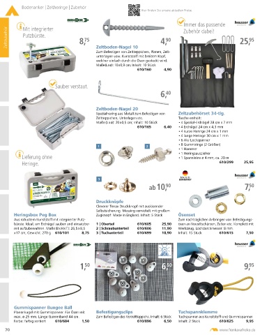 bürste. Ideal, um Erdnägel sauber und einsatzbe- 1 | Oberteil 610/605 25,90 ösen an Vorzeltschürzen, Zelten etc. Komplett mit
