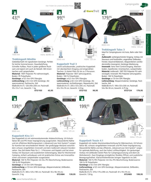 faktor 80 und PFC-freier Imprägnierung ausgestattet. Wasserdichte Nähte Kuppelzelt Tessin 4.1