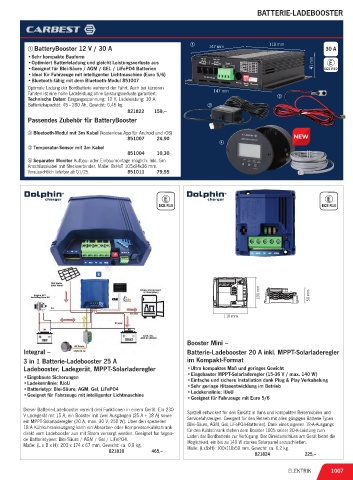 direkt vom Ladebooster aus mit Strom versorgt werden. Geeignet für folgen- Laden der Bordbatterie zur Verfügung. Der Direktanschluss am Gerät bietet die