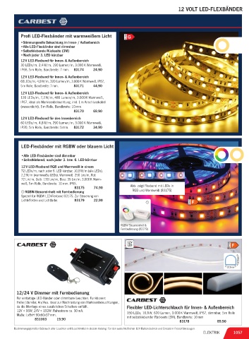 12V < 96W, 24V < 192W. Ruhestrom ca. 30 mA. 150 LEDs, 10,8 W, 620 Lumen, 3.000 K Warmweiß, IP67, dimmbar, 5 m Rolle